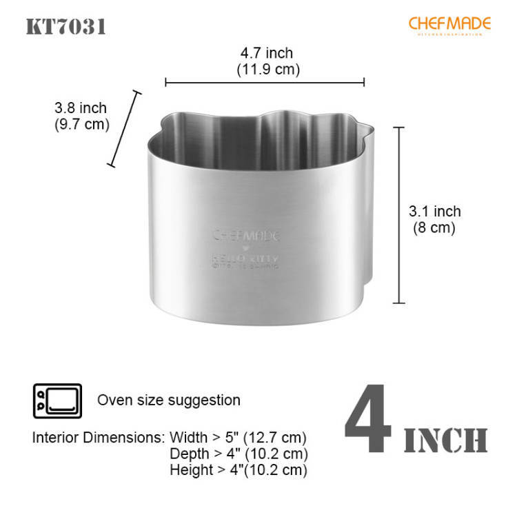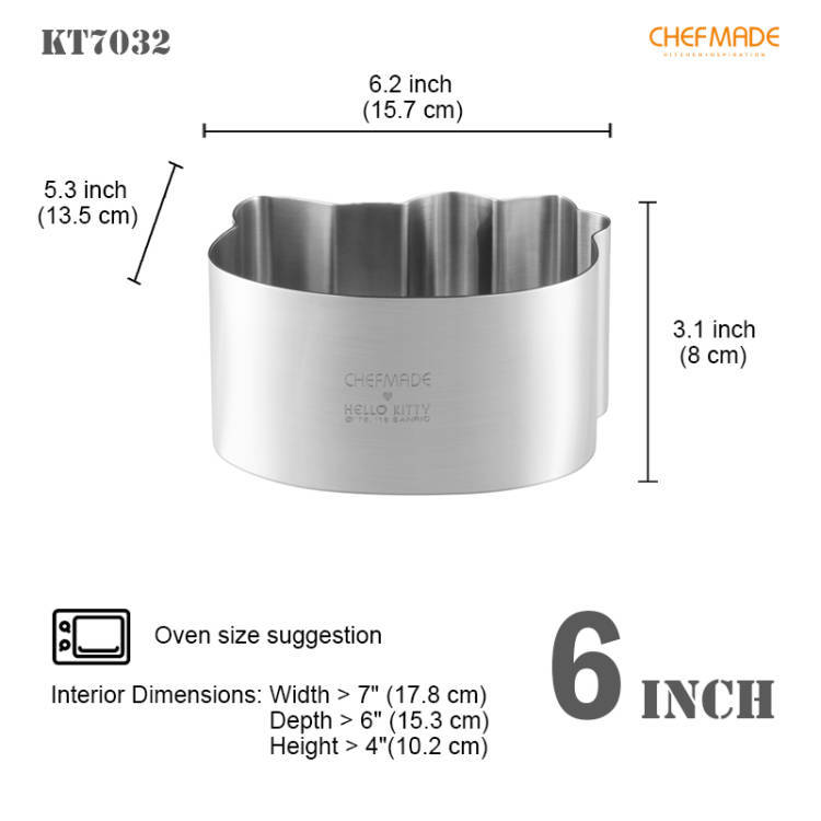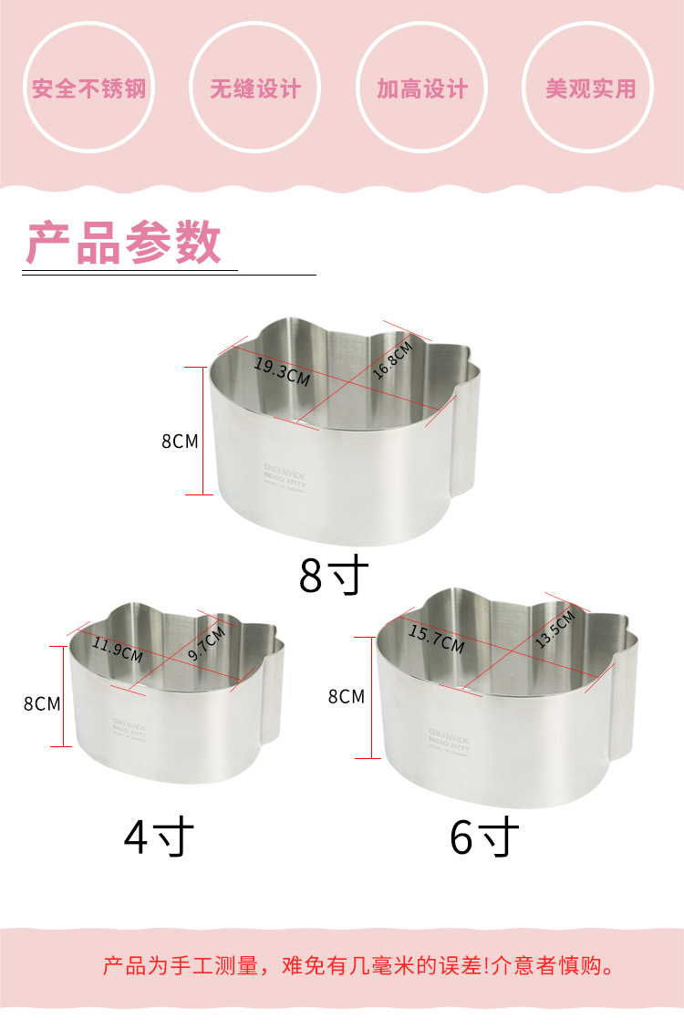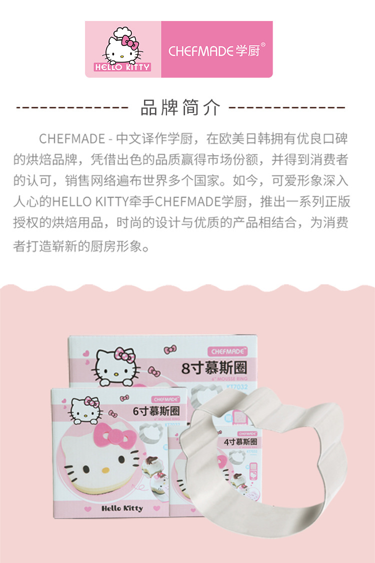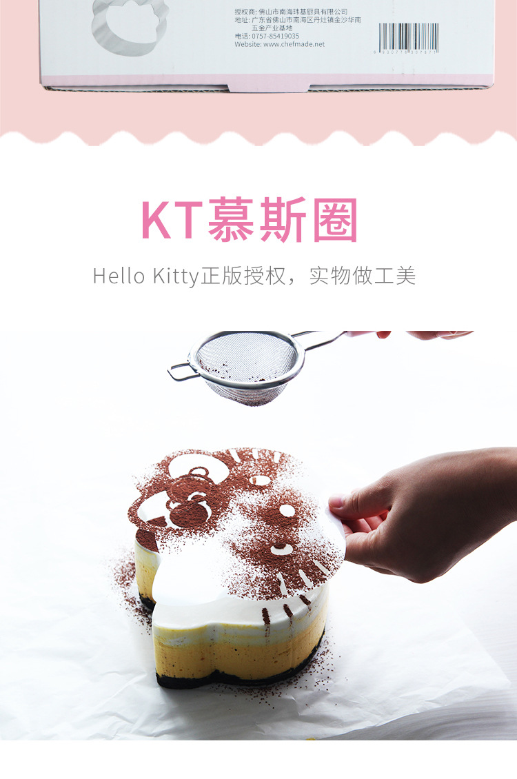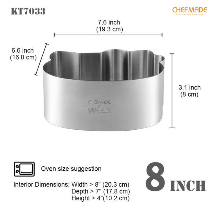 CHEFMADE KITTY stainless steel cake ring , food-grade material, includes 4/6/8 inch sizes, perfect for mousse, tiramisu and cheesecake.