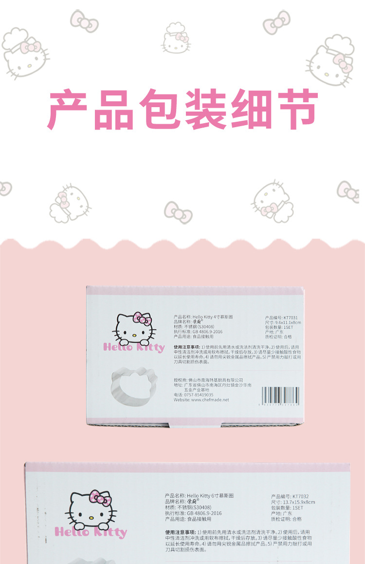 Whether preparing for birthdays, holidays, or professional events, this reliable Mousse Molds delivers exceptional performance. The versatile Mousse Molds accommodate various recipes and techniques, from frozen desserts to baked cheesecakes. The charming HELLO KITTY design elements add a touch of whimsy to this professional Stainless Steel Cake Ring , making it particularly appealing for themed parties and children’s events.