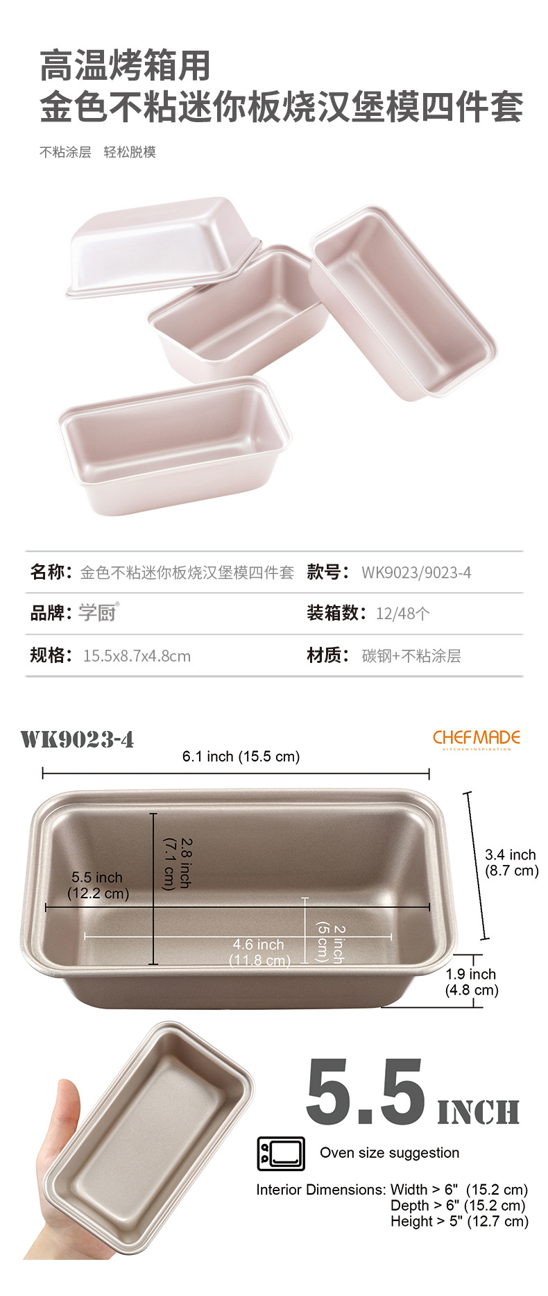 Crafted from premium carbon steel, this Toast Box Set delivers exceptional thermal conductivity for perfectly even baking. Each pan measures 15.5×8.7×4.8cm, providing ideal dimensions for single-serving portions while maintaining efficient oven space utilization. The commercial-grade non-stick coating ensures flawless release of even delicate baked goods and simplifies the cleaning process significantly.