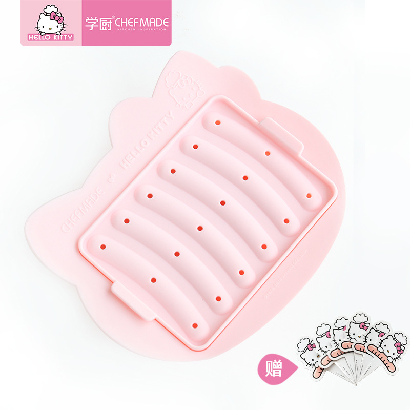 CHEFMADE KITTY silicone ice pop mold with easy-release design, 6-cavity capacity for homemade ice cream, popsicles, and kids' cheese sticks. Food-grade material, safe and durable. Original price was: $30.99.$28.99Current price is: $28.99. -