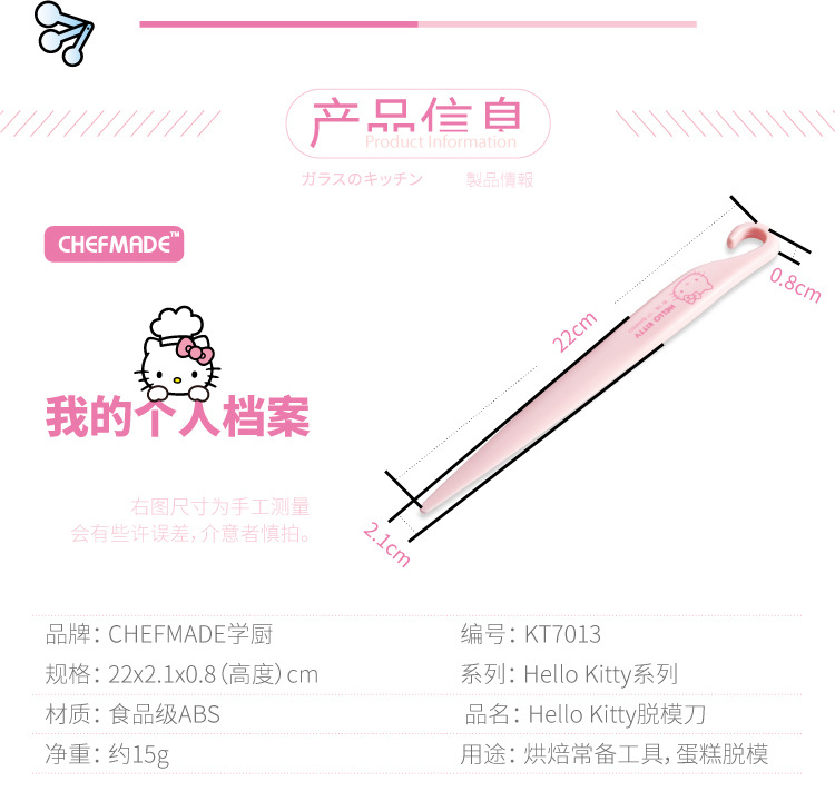 The Demolding Spatula stands as an essential tool in any serious baker’s collection, and the CHEFMADE KITTY series brings both functionality and charm to this kitchen necessity. This professional-grade demolding spatula combines food-safe ABS construction with an ergonomic design that makes delicate baking tasks both efficient and enjoyable. Specifically engineered for working with delicate chiffon cakes and other fragile baked goods, this versatile demolding spatula ensures your creations maintain their perfect structure from mixing bowl to serving plate.