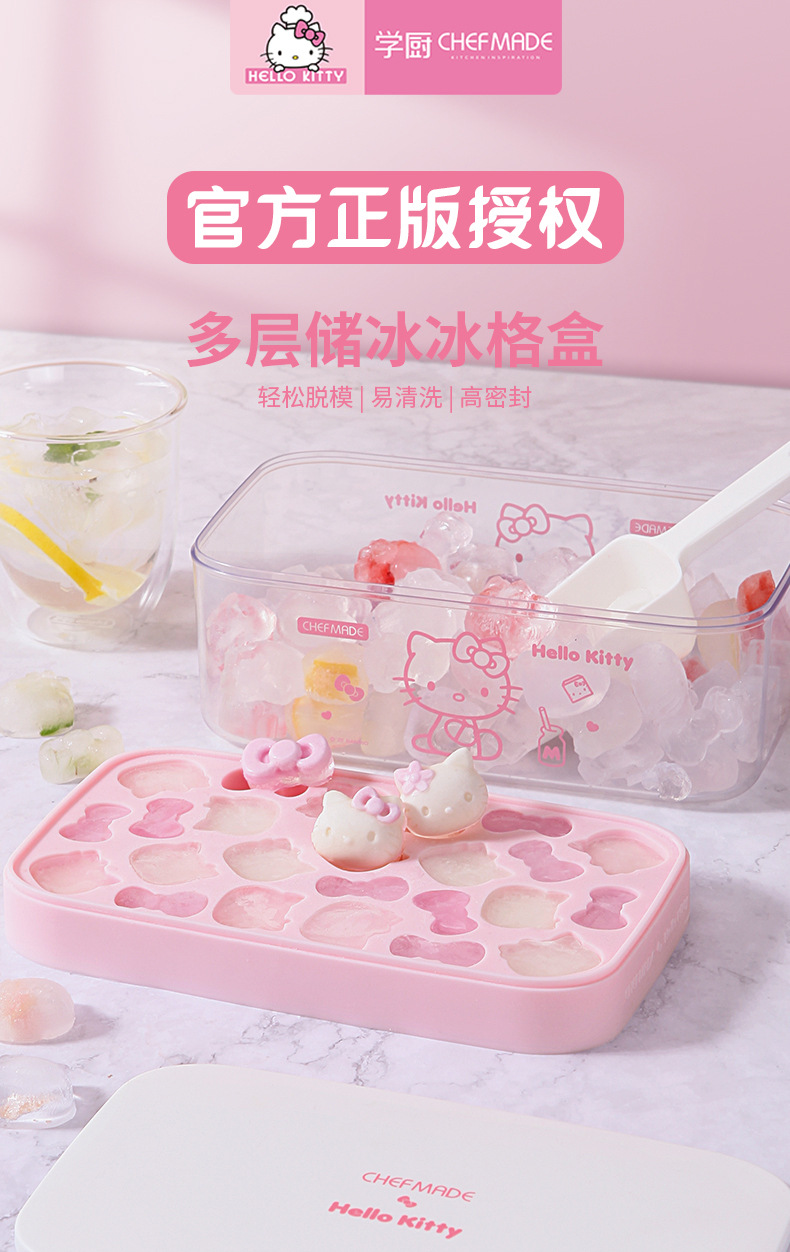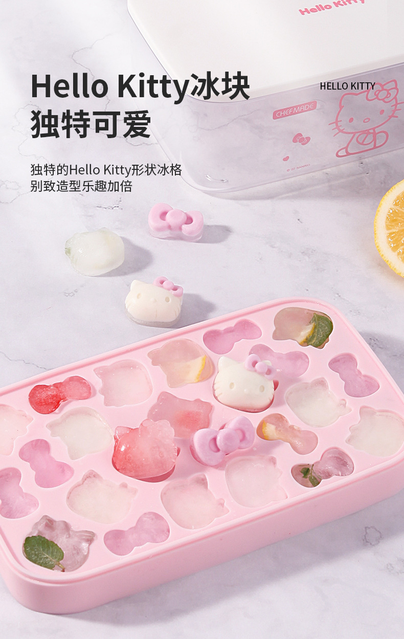 CHEFMADE Kitty Ice Tray features food-grade silicone and press-type design for easy ice release. Perfect ice cube mold for home freezer, 21.5×12.5×10.2cm.