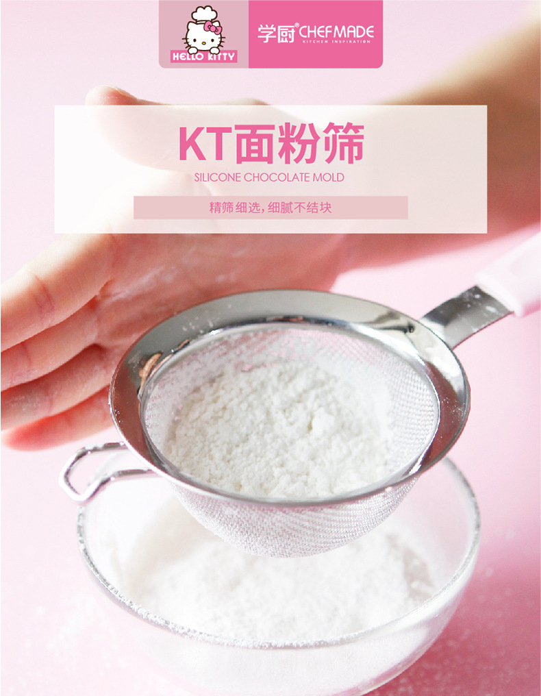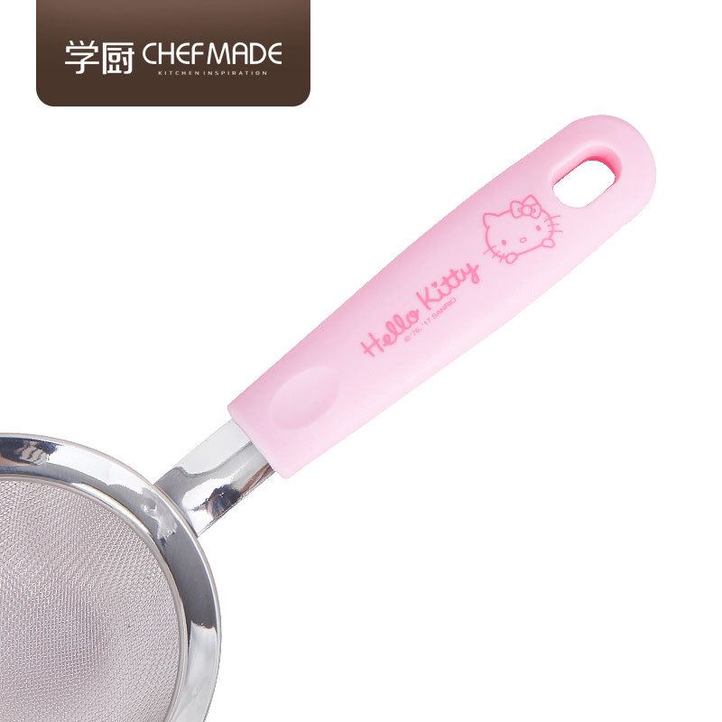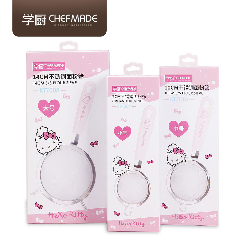 Official CHEFMADE KITTY304 Kitchen Sifter features 30-mesh stainless steel filter for flour and baking ingredients. Durable, rust-proof, perfect for professional baking results.