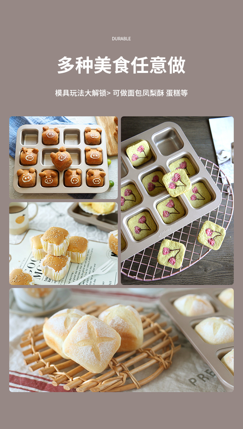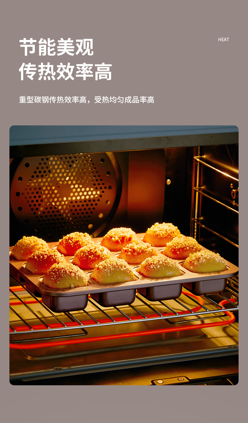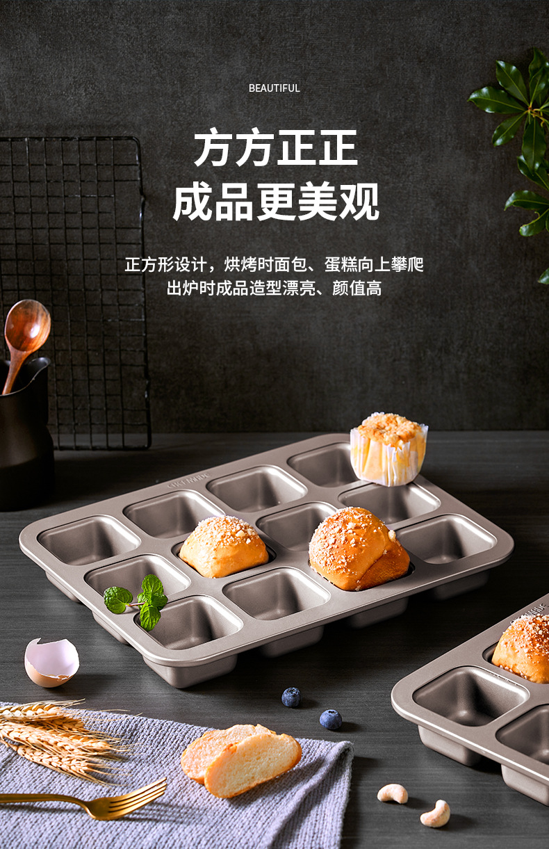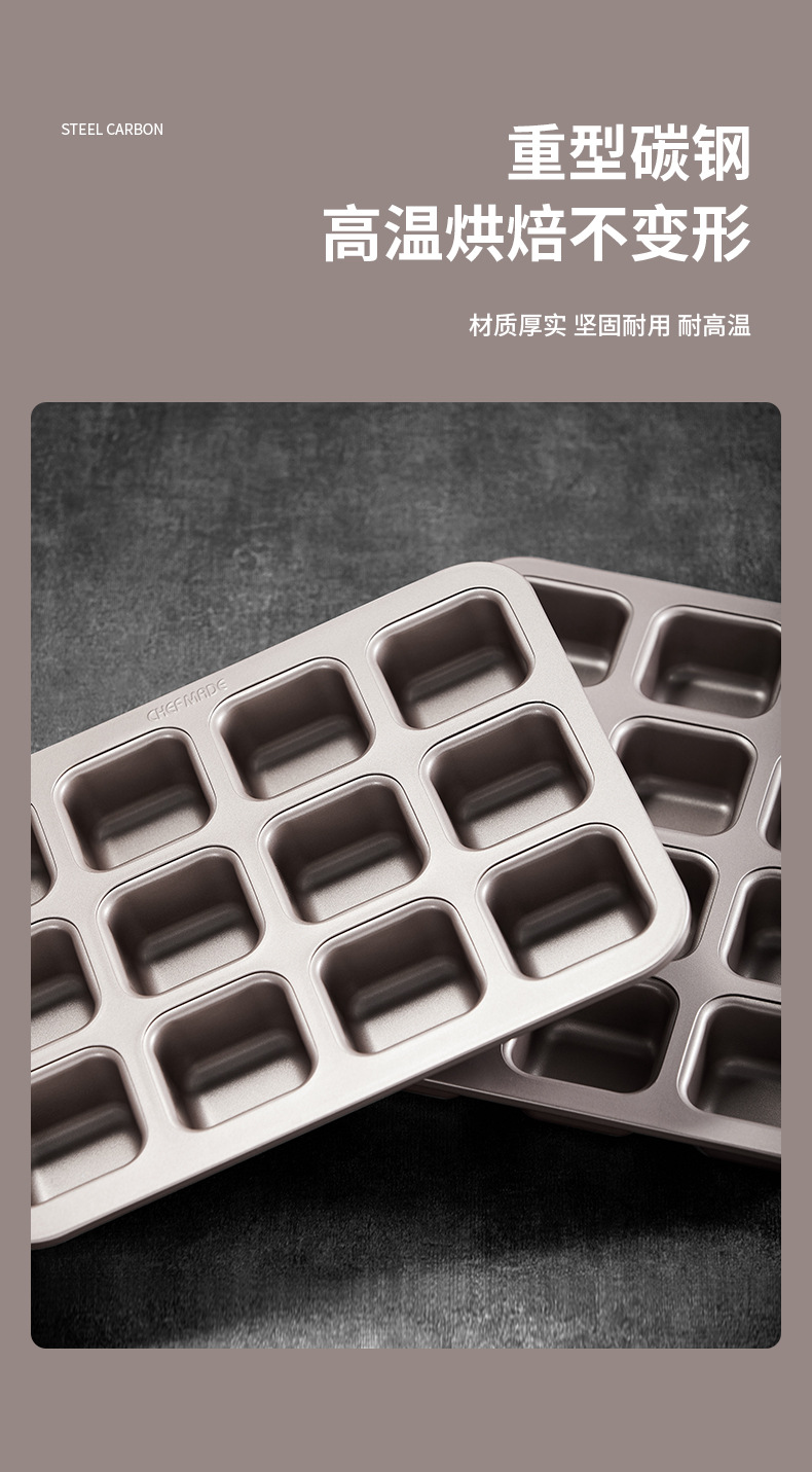 This professional baking mold utilizes heavy-gauge carbon steel construction—a material preferred by professional bakers for its superior heat conductivity. Unlike aluminum or ceramic alternatives, carbon steel distributes heat evenly across all 12 compartments, eliminating hot spots and ensuring each portion bakes consistently from edge to center.