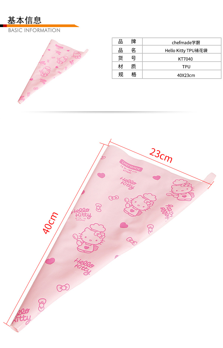 The TPU Piping Bags 3-pack from CHEFMADE’s KITTY collection revolutionizes cake decorating with its durable, reusable design. These premium Reusable Piping Bags measure 40X23cm, providing generous capacity for various baking projects while maintaining exceptional flexibility and control. As professional-grade Decorating Bags, they combine food-grade TPU material with adorable Hello Kitty designs, offering both practical functionality and visual appeal for bakers of all skill levels.